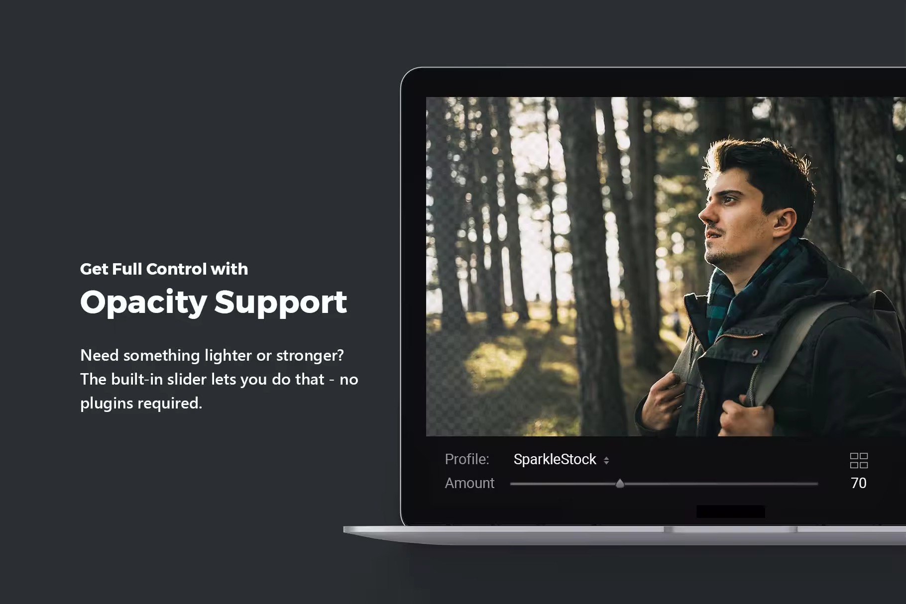 - ✔️使用内置的不透明度滑块微调预设强度。