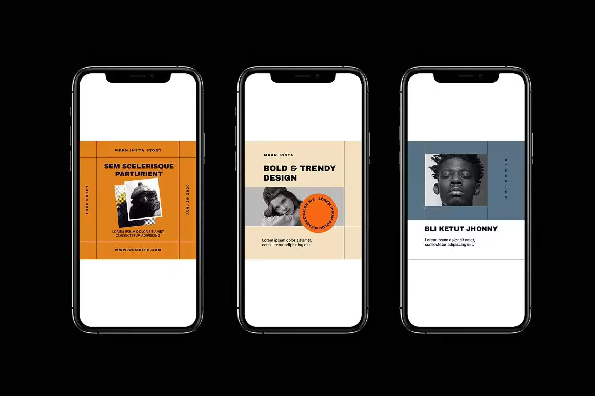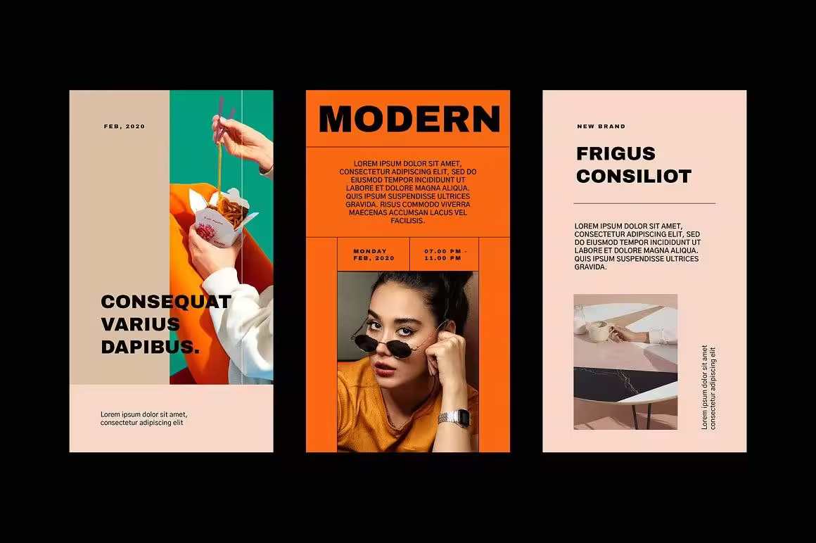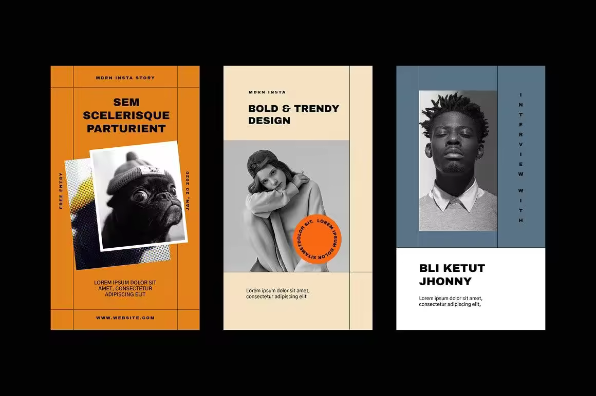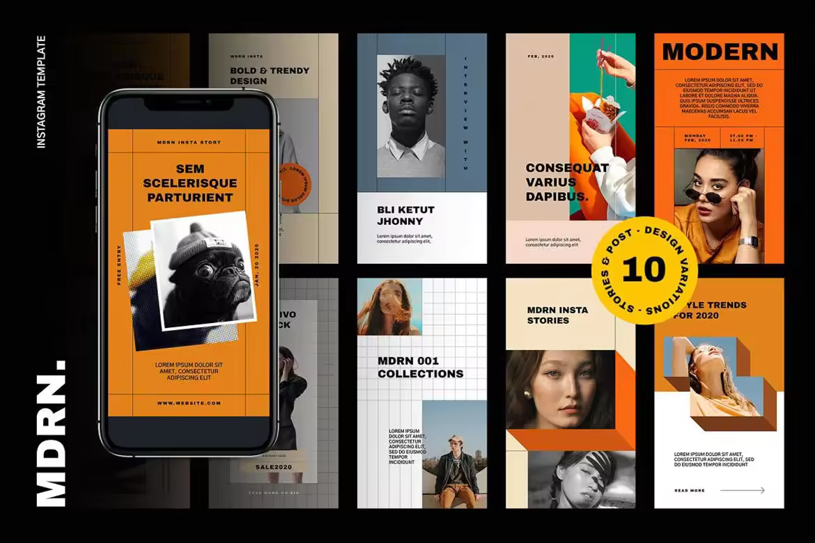 受大胆设计趋势的启发,应用醒目的颜色和使用排版,该模板具有 10 种不同的布局设计,有 2 种不同大小的 Instagram 故事和帖子格式,可以在 Adobe Photoshop 中轻松编辑。