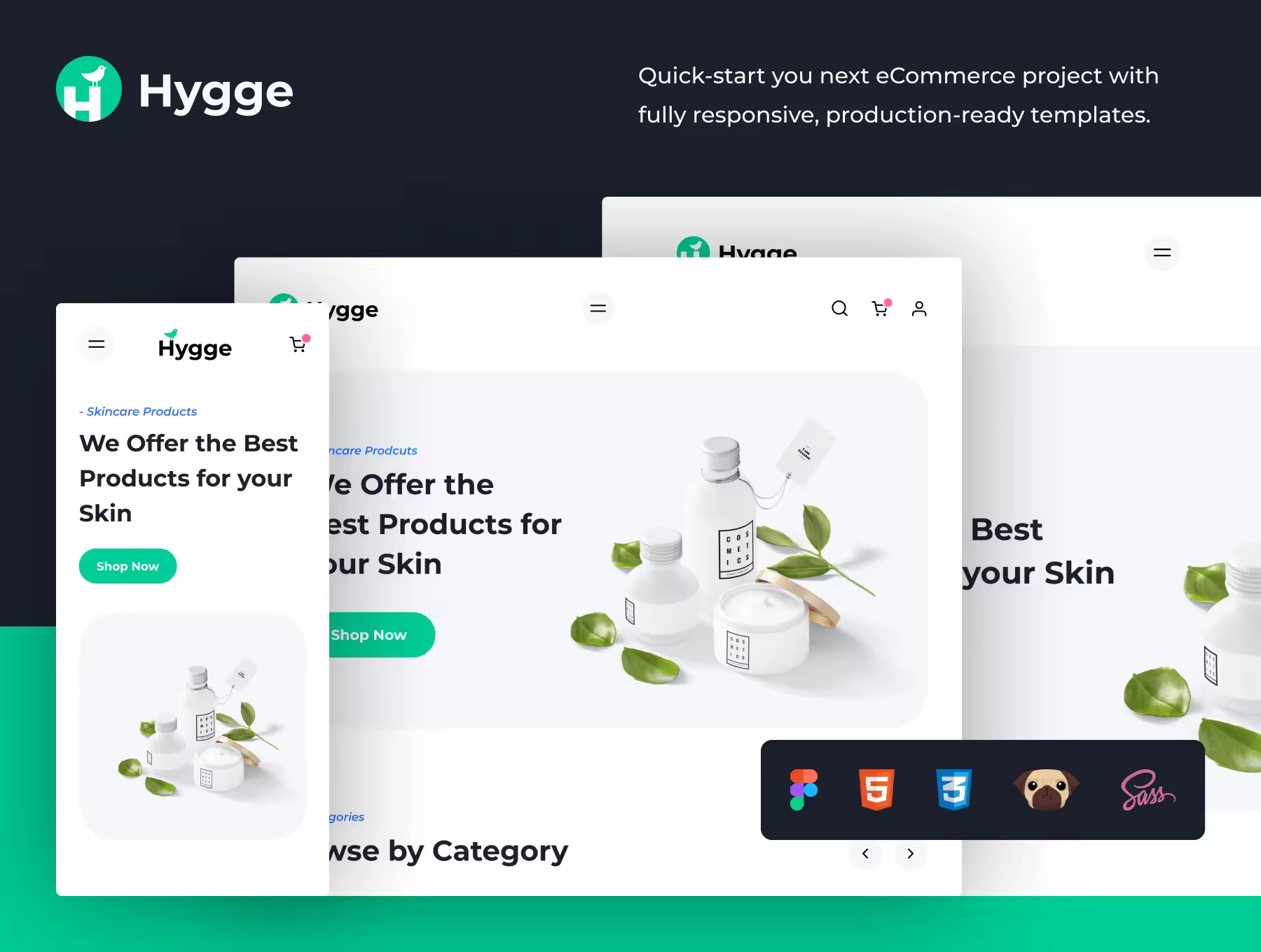编写了许多有用的组件,同时涵盖了电子商务应用程序中最关键的部分。此设计都考虑到了移动优先的问题。