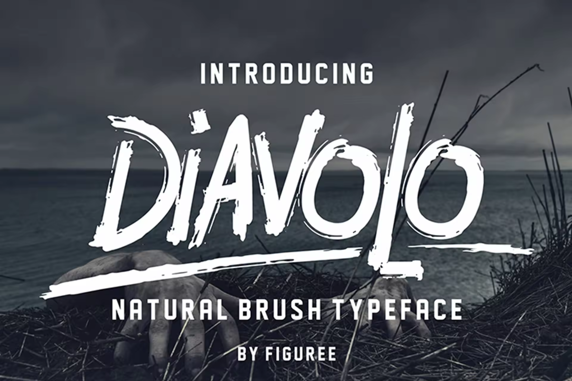 暗黑魔鬼书法笔刷装饰字体 Diavolo 装饰字体 7.1k+ OHM。 Diavolo是一种毛笔字体,它是为了给你的印刷工作一个现实的手绘外观。 使用Diavolo制作商标、海报、t恤设计或任何需要个人风格的东西。