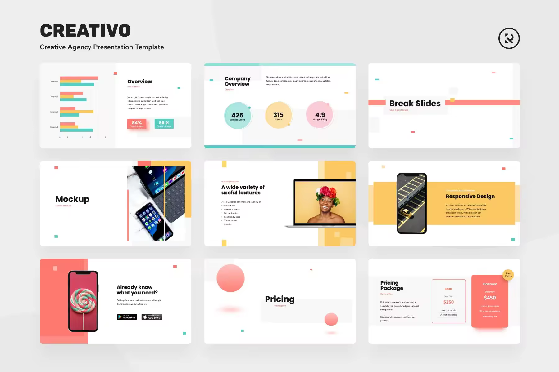 创意机构作品集谷歌幻灯片模板 Creativo – Creative Agency Google Slides