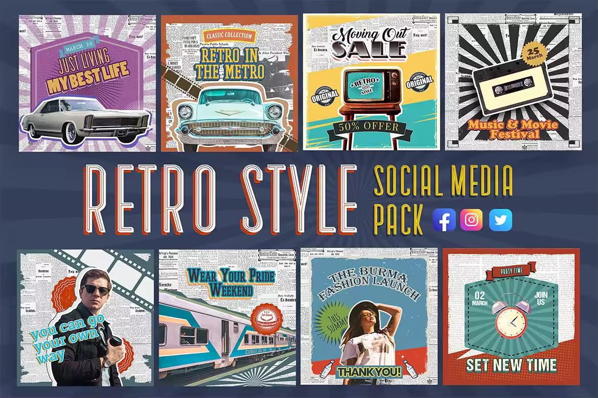 复古报纸排版社交媒体贴图模板 Retro Social Media Template 社交媒体 2.3k+ ZZH 为您的社交媒体推广活动制作的复古社交媒体模板。 10 个社交媒体模板 Facebook帖子大小(1200X630) Instagram帖子尺寸(1080X1080) 推特帖子大小(440X220) 完全分层的PSD文件 完全可定制和可编辑 易于编辑的社交媒体横幅 自述文件帮助文件