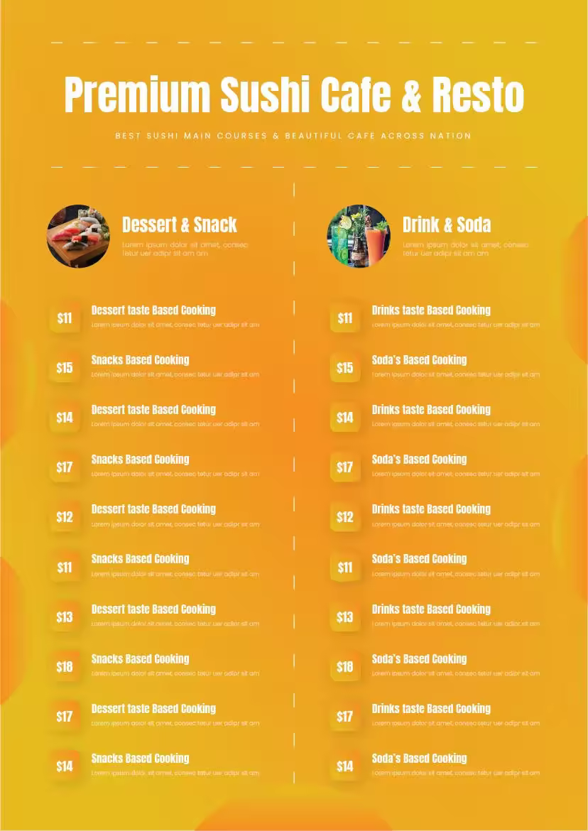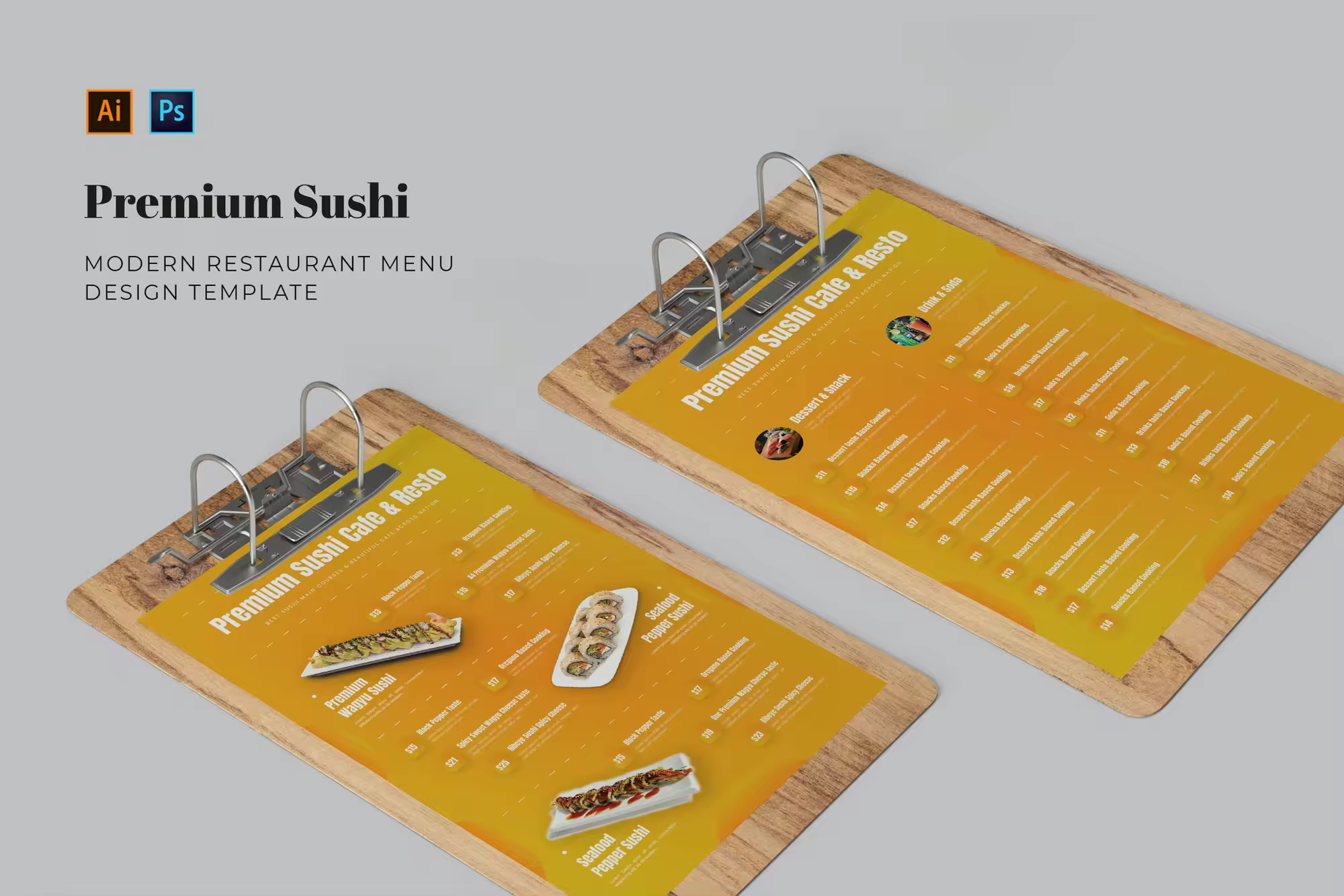 日料寿司餐厅菜单设计素材,您可以下载具有易于编辑的内容和优质设计的优质食品菜单模板,您可以轻松地根据您的各种需求和需求对其进行自定义。完全可定制 – 更改颜色、文本和图像;EPS、PSD 和 AI文件;A4 尺寸,预留出血位,预览中使用的食品照片不包括在内。