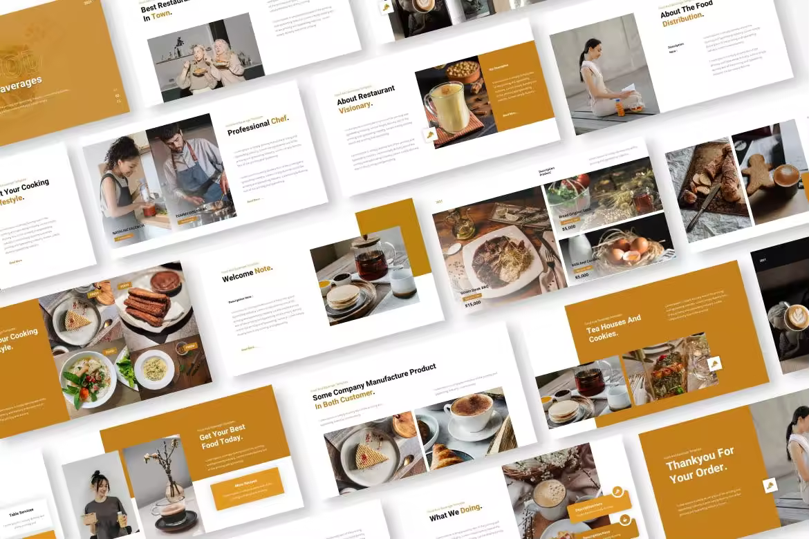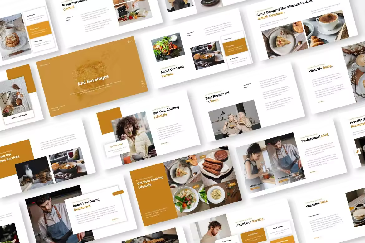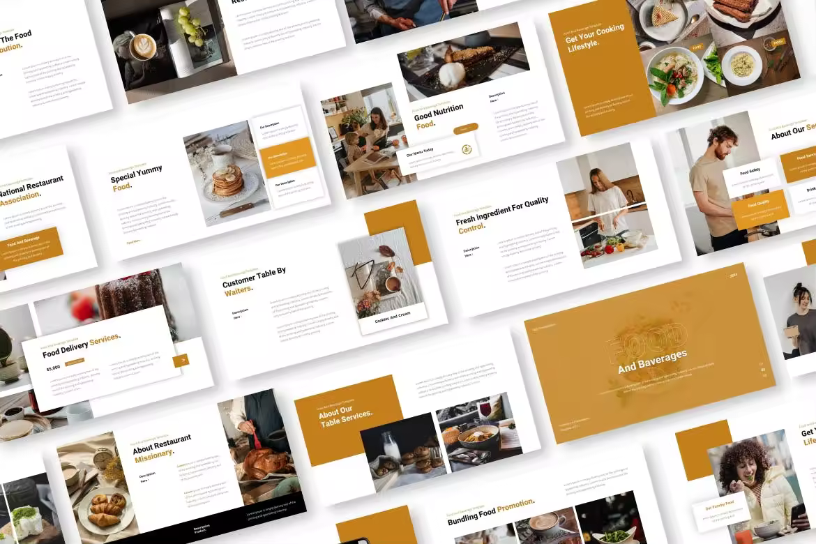 食品和饮料推广PPT模板 Food And Baverages Powerpoint Template PPT模板 564 ZZH 为您的公司简介、营销和多用途业务恢复投资组合 Powerpoint 演示模板。