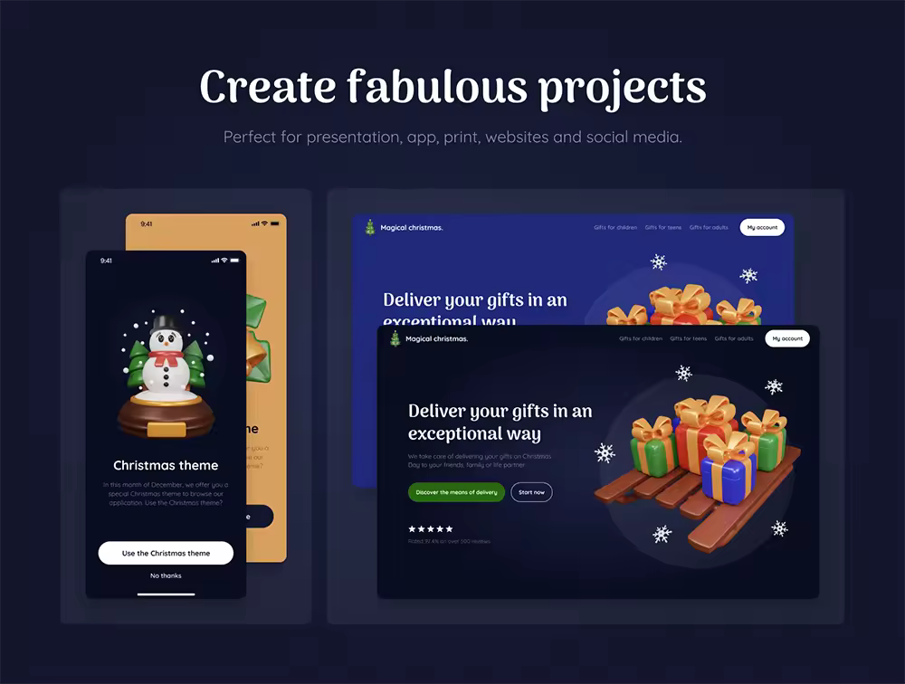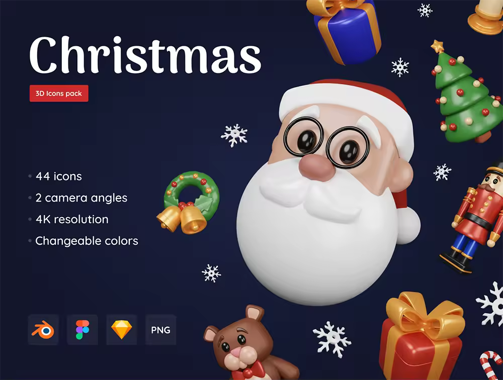 使用圣诞主题的 3D 图标创建精彩的项目! 44 个可自定义的 3D 图标库,这些图标将帮助您创建令人惊叹的演示文稿、网站、应用程序或社交媒体内容。
