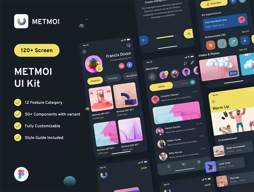这是一款独特而富有创意的高品质现代设计。包括 120 多个 iOS 屏幕和 200 多个 UI 元素。它们是完全可定制的图层并易于编辑。