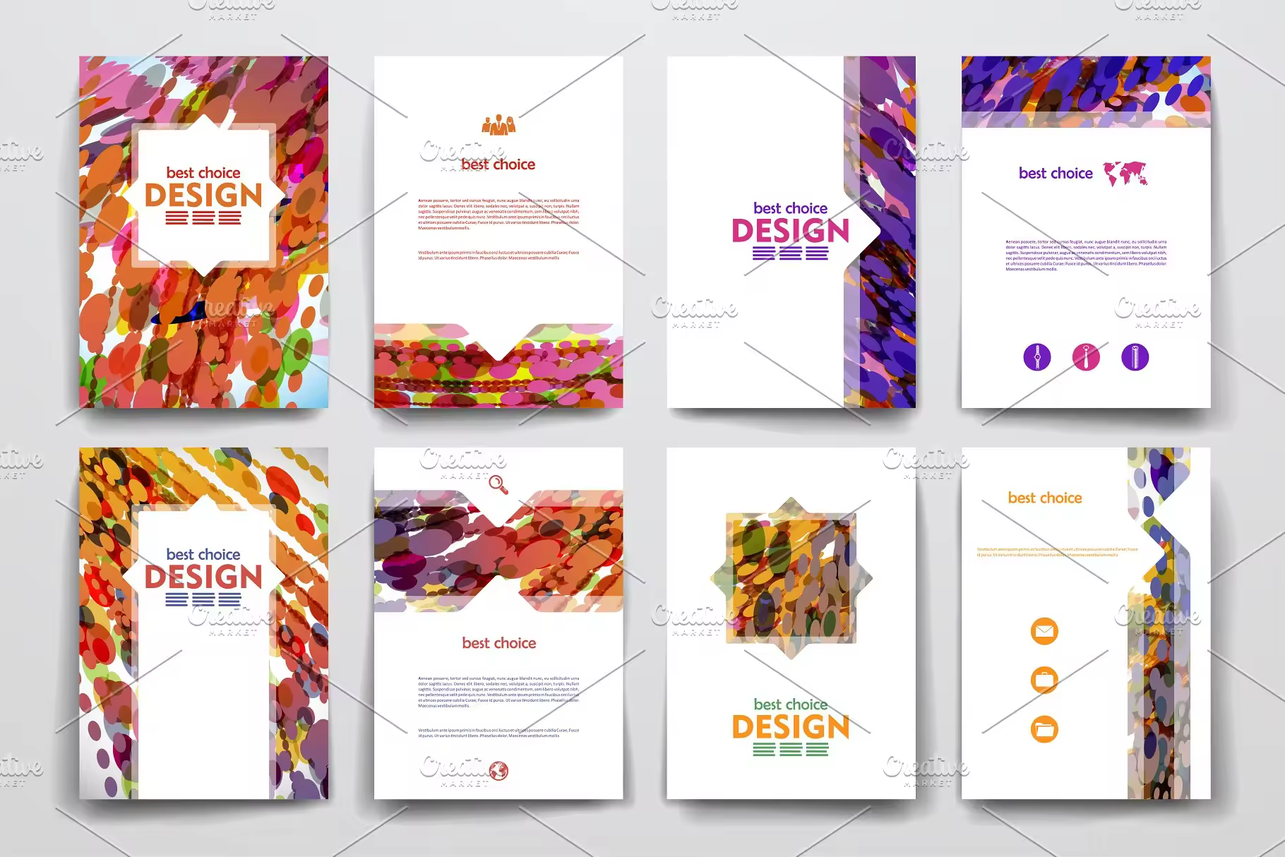 抽象背景小册子模板 Set of Beautiful Brochures 杂志画册 3.3k+ OHM。 这组抽象背景小册子模板有着完美的设计布局,是完全可编辑的矢量文件,已保存为 EPS10 (使用 Adobe Illustrator程序),可在EPS文件中展开。 素材清单: 3个矢量文件(EPS10)。 3个JPEG预览文件。