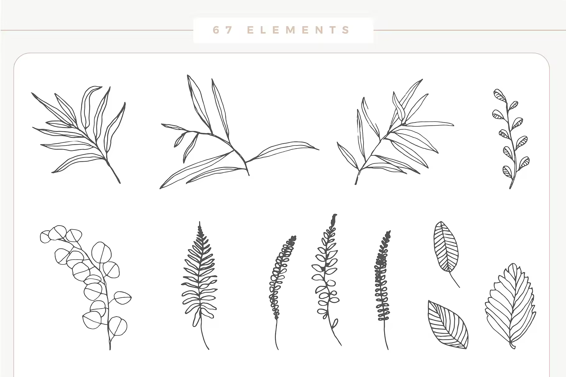 浪漫手绘色彩落叶树枝元素 Hand drawn Leaves Collection 手绘插画 4.9k+ OHM。 这组浪漫的手绘落叶树枝元素合集是用于设计品牌项目,婚礼邀请,包装,时尚服装,海报或任何打印项目的理想素材。:)
