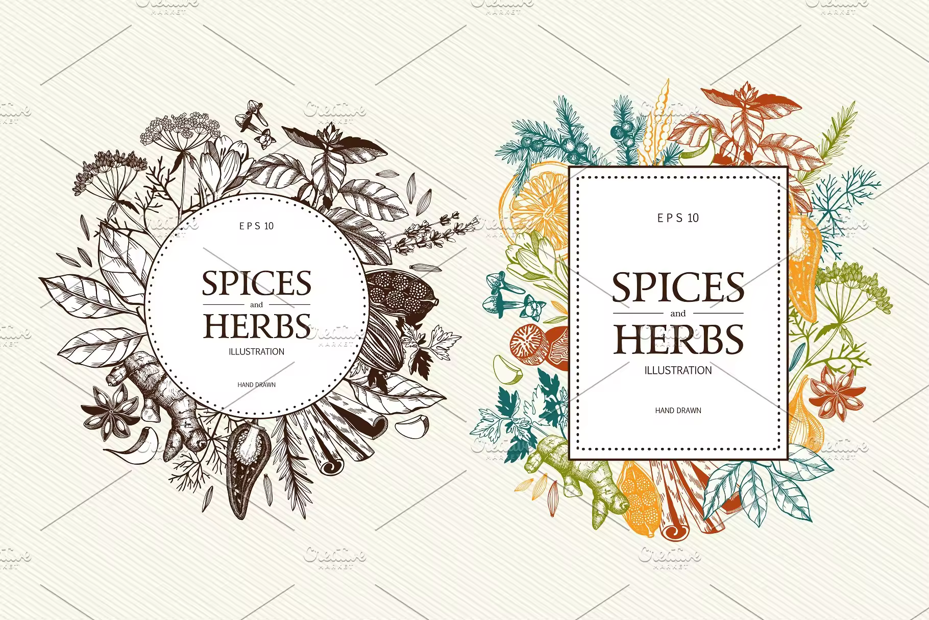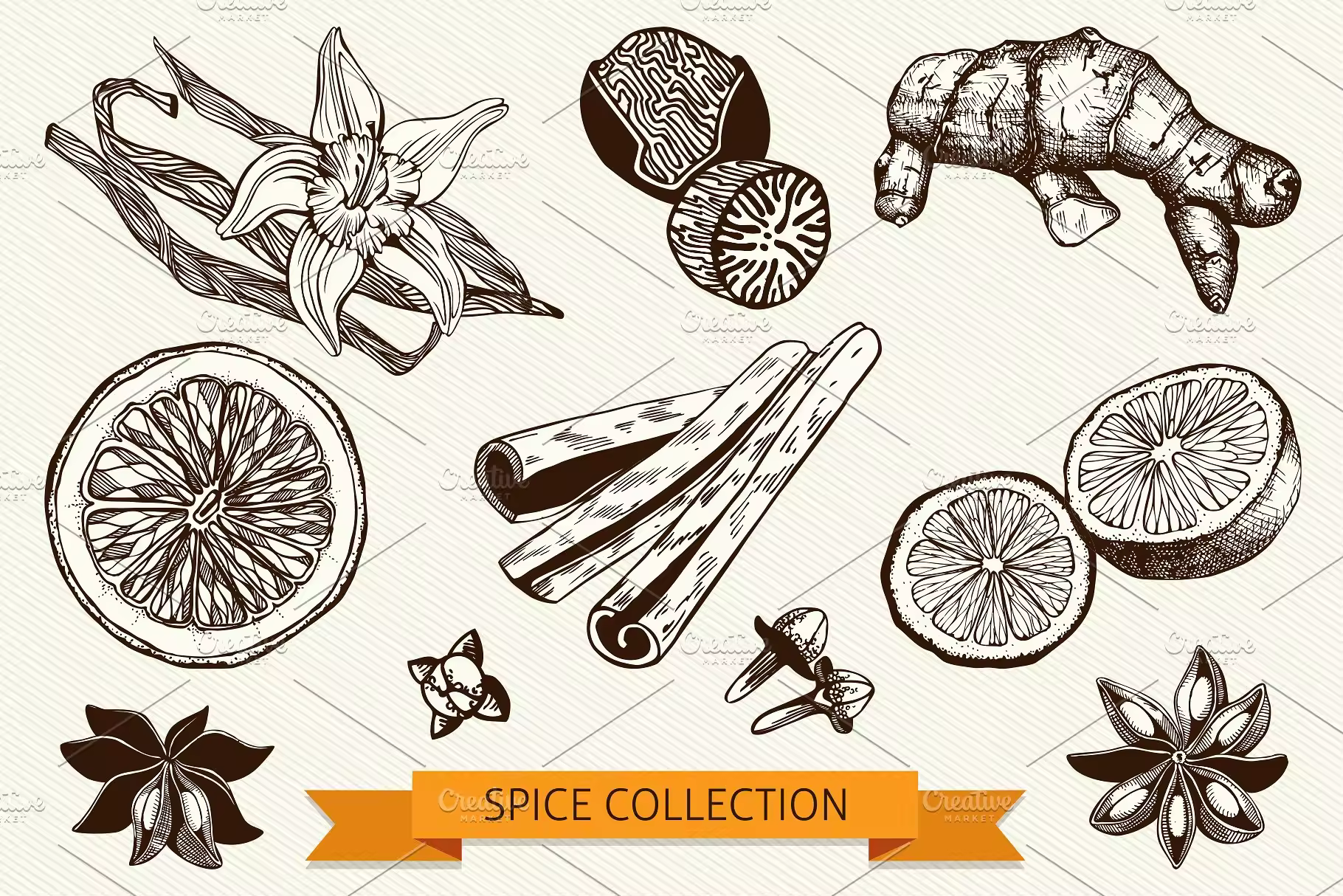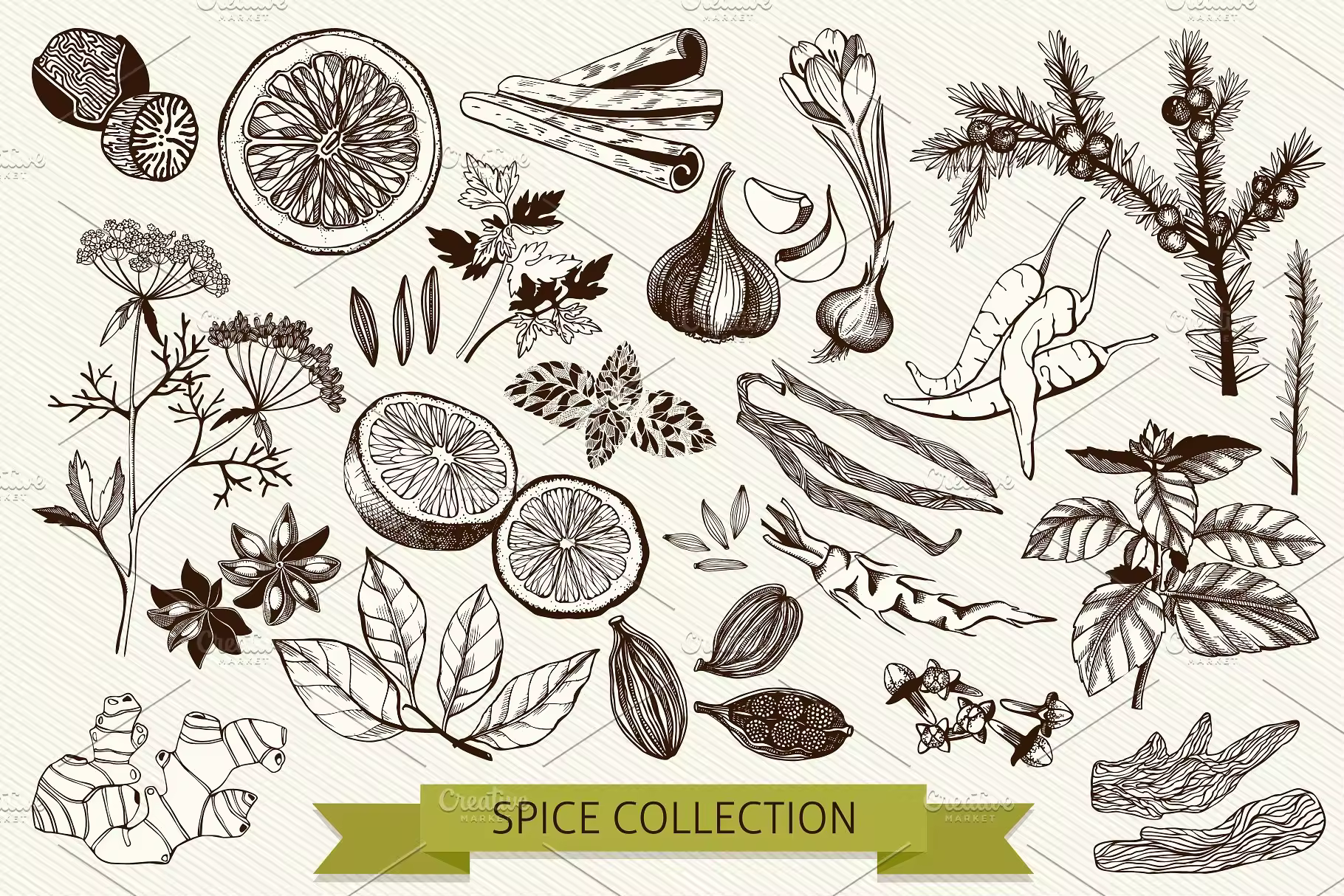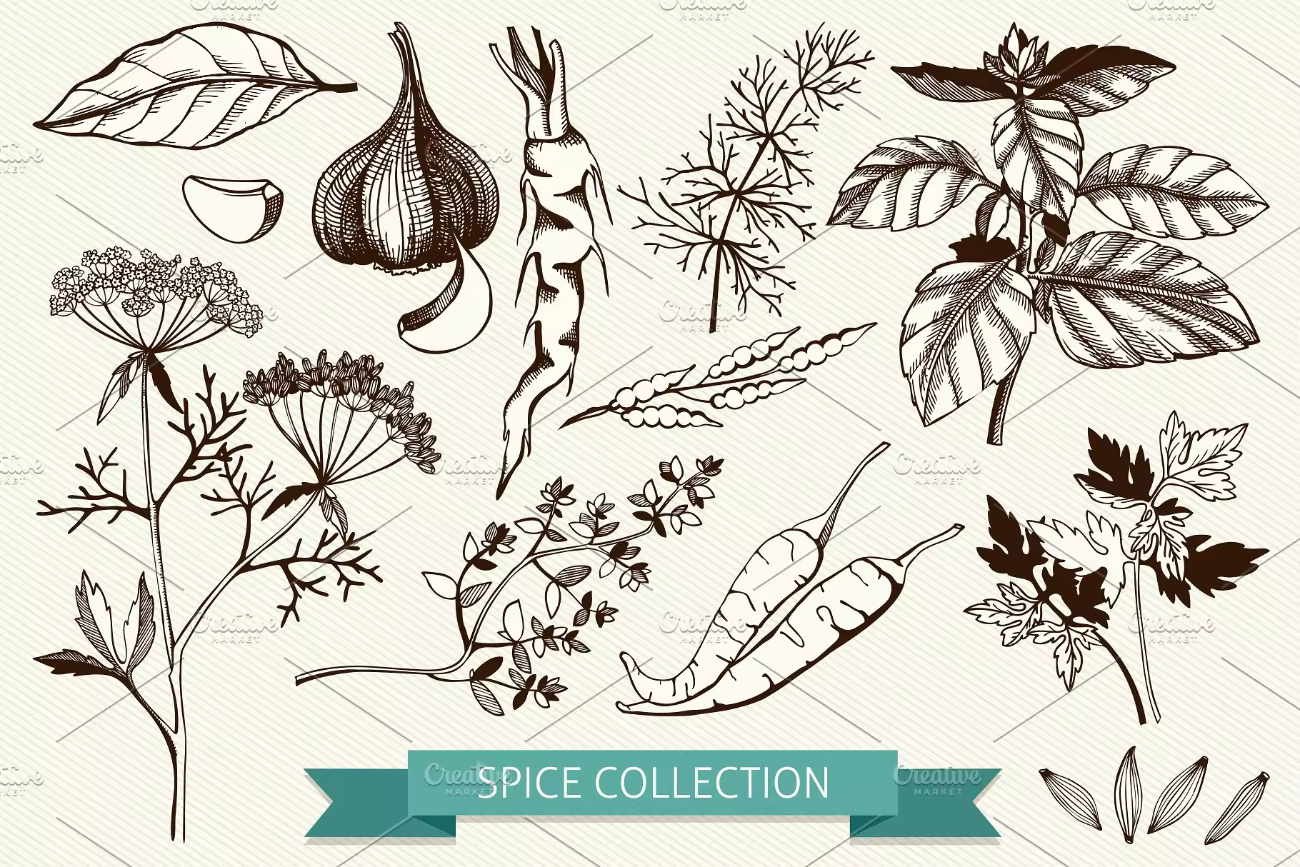 这组矢量古典香料插图合集的所有图像都是300dpi, RGB,4000×4000像素。