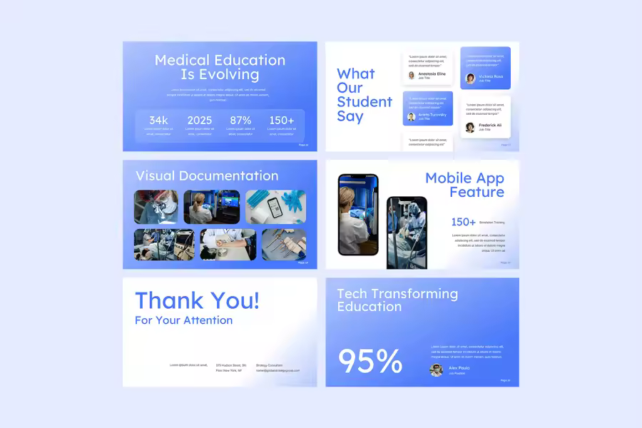 使用医学教育演示模板,打动投资者,传达您的愿景。医学教育演示模板旨在以清晰、专业和学术的精准度传递复杂的健康和科学信息。该模板非常适合医学院、培训研讨会、医疗保健研讨会或学术讲座,布局简洁、结构清晰,采用临床配色方案、专业排版和直观的视觉效果。