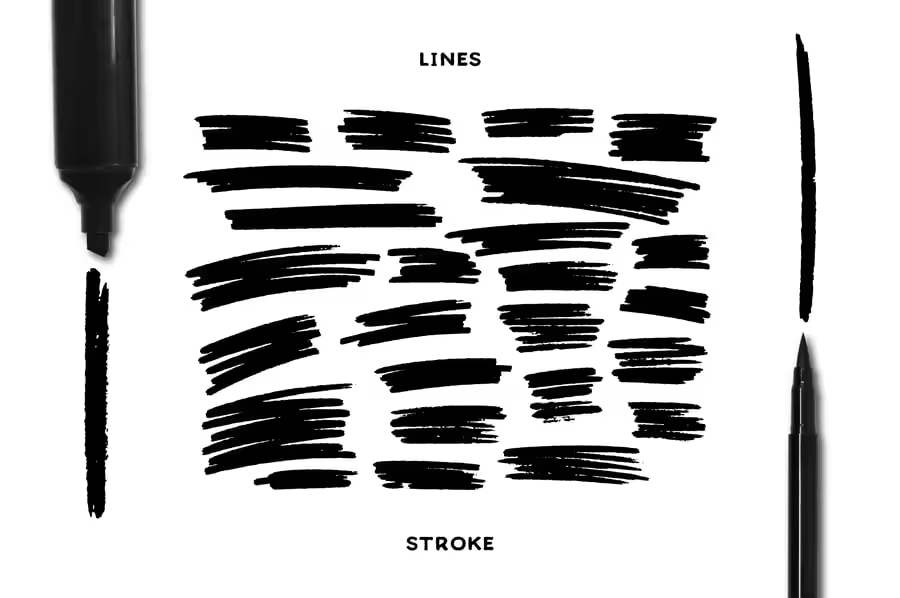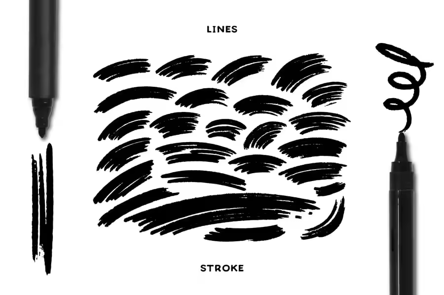 使用我们的马克笔元素系列,将您的设计转化为杰作。这些手工元素采用大胆的毛笔笔触创作,为您的作品注入原始的艺术能量。非常适合用于提升海报、插图、书籍、杂志、名片等各种项目的效果。