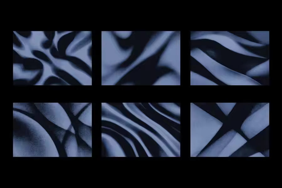 一组精致的抽象暗色波浪纹理,将深邃的黑曜石色调与柔和流畅的动感融为一体。流畅的单色渐变营造出优雅与力量感,使其成为现代、极简或大胆视觉项目的理想之选。非常适合追求时尚而强劲氛围的品牌推广、封面、包装和数字展示。