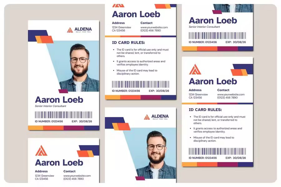 **PHOTOSHOP、ILLUSTRATOR 和 CANVA** 适用于企业、代理机构和企业家的员工 ID 卡模板