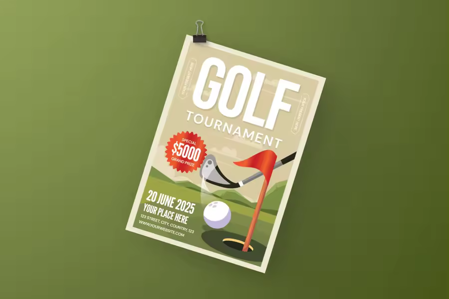 这款现代时尚的传单模板可提升您的高尔夫锦标赛体验。它非常适合锦标赛组织者、高尔夫球场业主以及希望提升赛事影响力的体育营销人员。模板色彩鲜艳,设计结构清晰,将帮助您以极具视觉吸引力的方式传达关键细节和精彩内容。