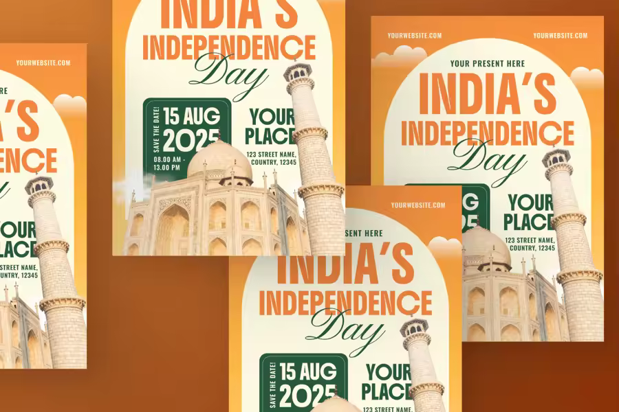 这款多功能模板设计易于定制,您可以添加自己的文字、图片和品牌信息,打造独特而引人入胜的视觉体验。无论您是想促销、发布新产品,还是仅仅宣传印度独立,这款模板都能满足您的需求。还在犹豫什么?立即下载这款精美的传单模板,给您的受众留下深刻印象。