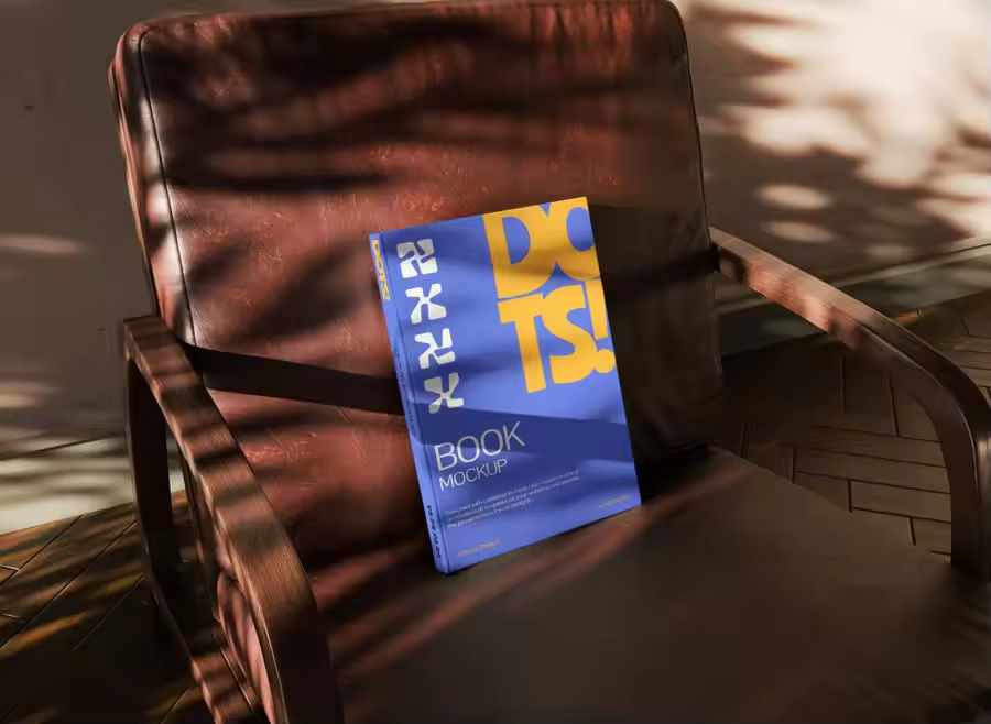 这款“椅子上的书”模型,以时尚逼真的场景展示你的书籍封面设计。该模板以高分辨率场景呈现了一本书自然地摆放在椅子上,专业的灯光、逼真的阴影和细致的纹理,突显你的设计,营造出优雅的视觉效果。
