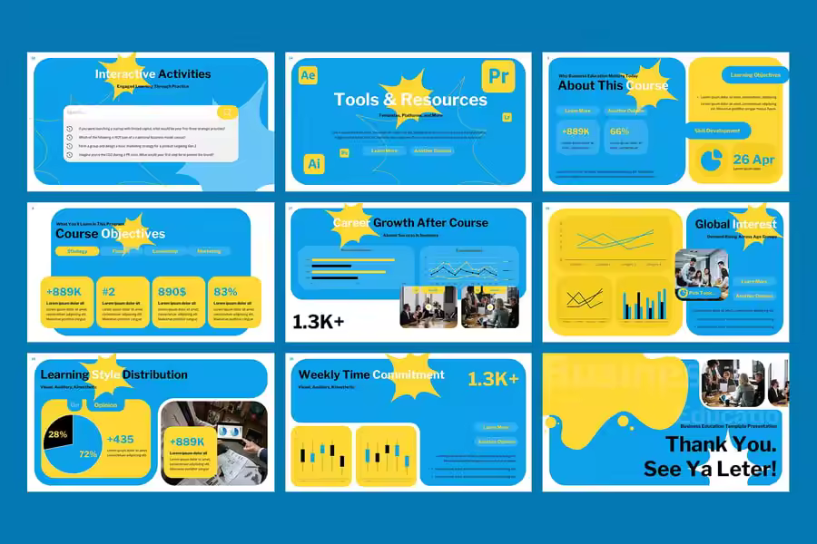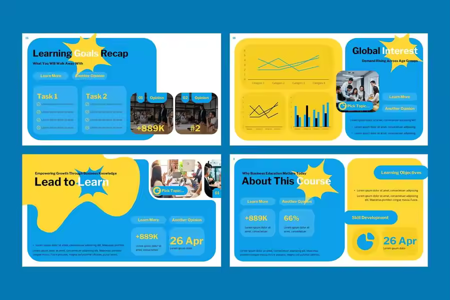 商业教育 Google 幻灯片演示模板是一款现代、专业且完全可定制的幻灯片,旨在提升您的商业培训、教育研讨会和企业学习课程的体验。该模板布局简洁,信息图表引人入胜,幻灯片设计多样,可帮助您进行清晰、有影响力的演示,吸引观众。此外,该模板包含完全可编辑的图表、示意图和视觉元素,可简化复杂的主题。简洁、极简的风格确保您的信息脱颖而出,同时保持精致专业的形象。