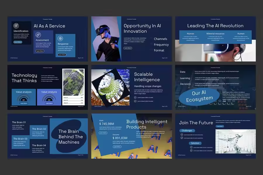 **推荐用于:**人工智能公司、人工智能、人工智能演示、科技初创公司、技术公司、机器学习、SaaS 演示文稿、人工智能演示文稿、人工智能初创公司、数据科学、人工智能业务、人工智能技术、机器人演示、创新演示文稿、人工智能解决方案、IT 公司、未来技术、人工智能咨询、数字化转型、人工智能战略。