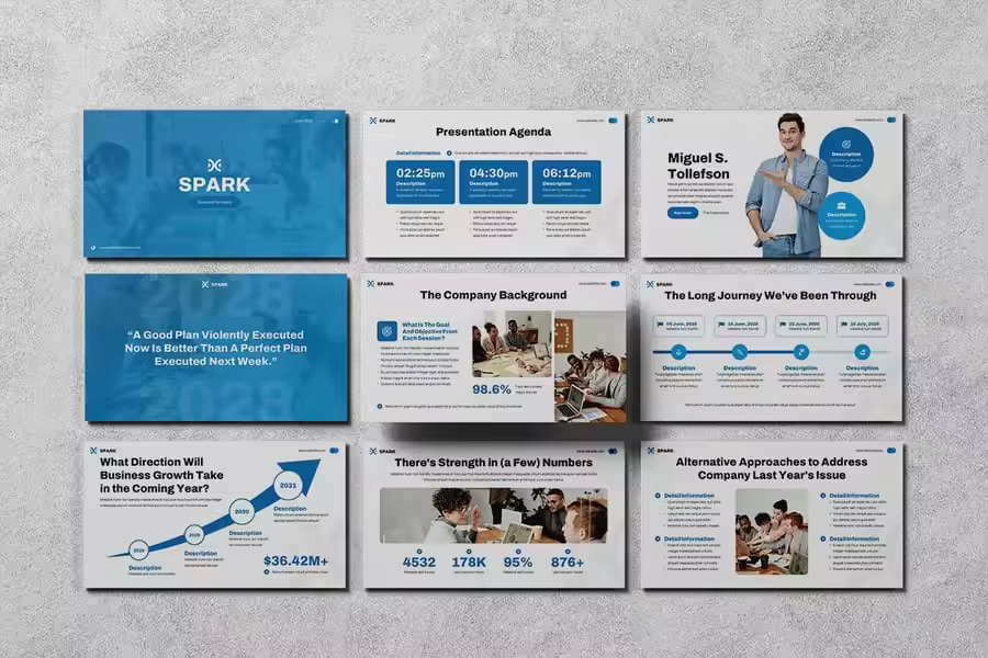 适用于:商业演示、演示文稿、公司演示、营销策略、财务报告、初创企业演示文稿、专业演示、营销机构、初创企业和企业家演示、年度报告演示以及教育工作者和培训师演示。