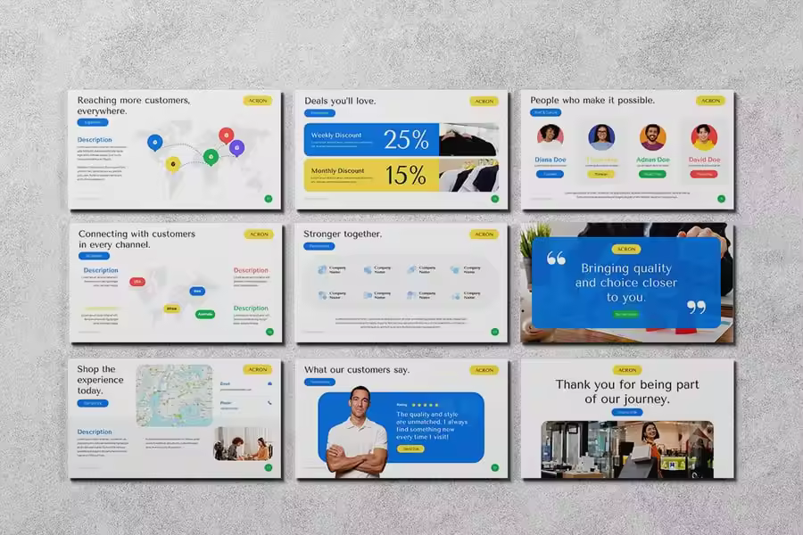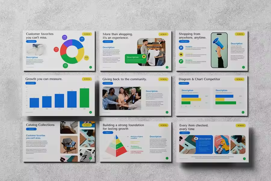适用于:商业演示、演示文稿、公司演示、营销策略、零售策略和商业计划、销售报告和绩效评估、特许经营提案和扩展计划、投资者和利益相关者会议。