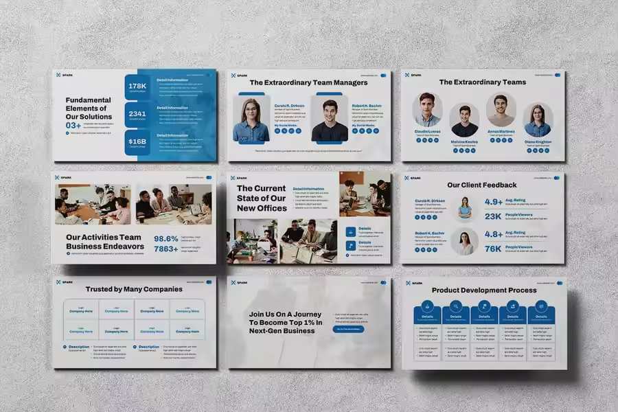 适用于:商业演示、演示文稿、企业演示、营销策略、财务报告、初创企业演示文稿、专业演示、营销机构、初创企业和企业家演示、年度报告演示以及教育工作者和培训师演示。