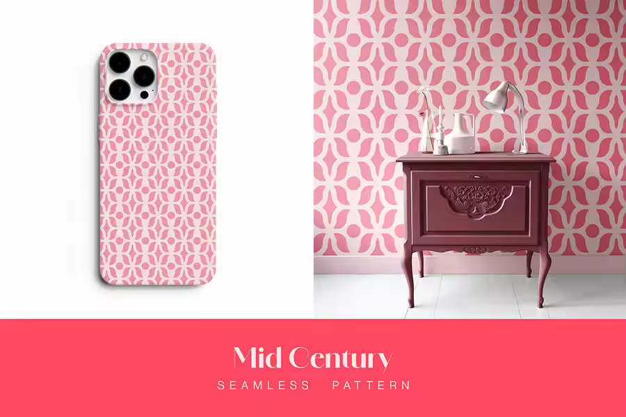 无缝衔接的中世纪图案,以复古几何形状和大胆色彩为特色。非常适合纺织品、壁纸、包装和家居装饰项目,灵感源自经典复古设计美学。