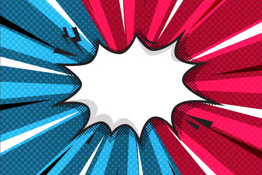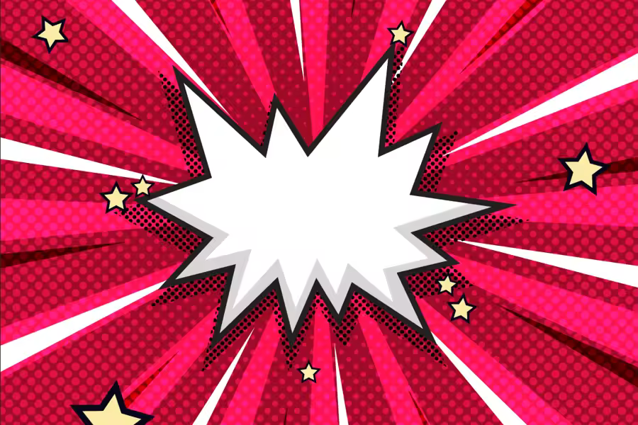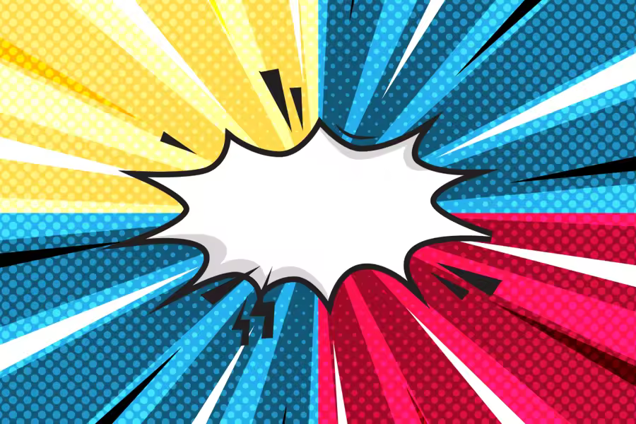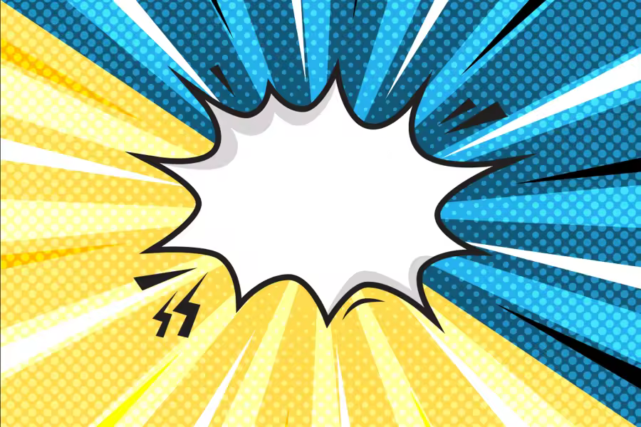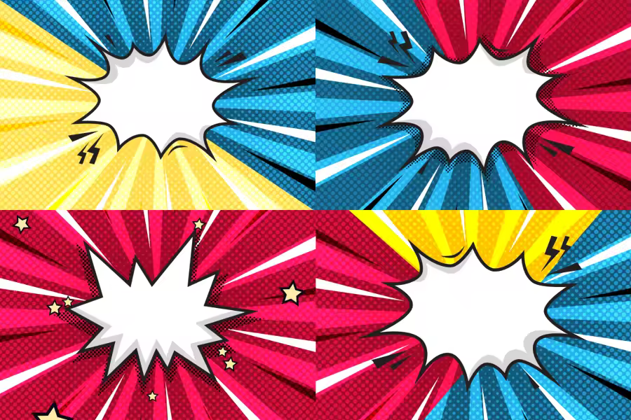 这套 PNG 素材集采用充满活力的漫画风格爆炸背景,并融合了放射状半色调图案、空白对话气泡和动态爆裂效果。