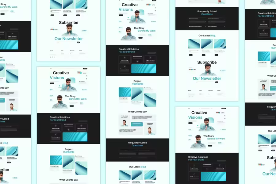 使用我们现代化的作品集代理网站模板,展现您的创意,打动客户。这款模板非常适合设计工作室、自由职业者和创意机构,包含项目展示、服务亮点、团队简介、客户评价以及简洁的联系表单等板块。它拥有时尚的设计、全面的响应能力和 SEO 优化,是您专业展示创意作品并吸引新机会的理想解决方案。