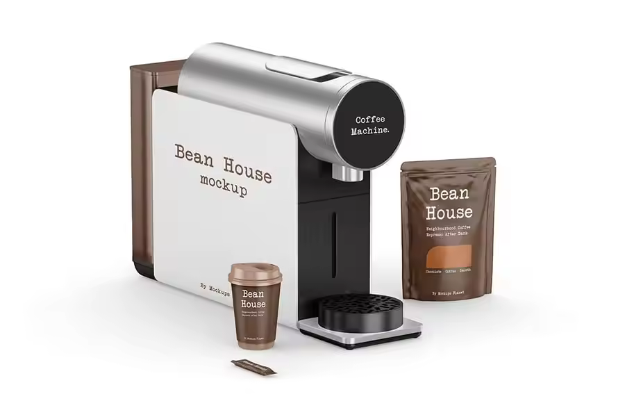 使用这款高级咖啡机模型套装,以时尚的方式展示您的品牌设计。套装包含 4 个高分辨率 PSD 文件,每个文件拥有 4 个独特的视图,让您能够使用智能对象和井然有序的图层轻松自定义设计。非常适合在现代咖啡机上展示徽标、图案或品牌标识概念。这些文件完全可编辑,并可选择调整颜色、阴影和背景,以获得逼真的呈现效果。