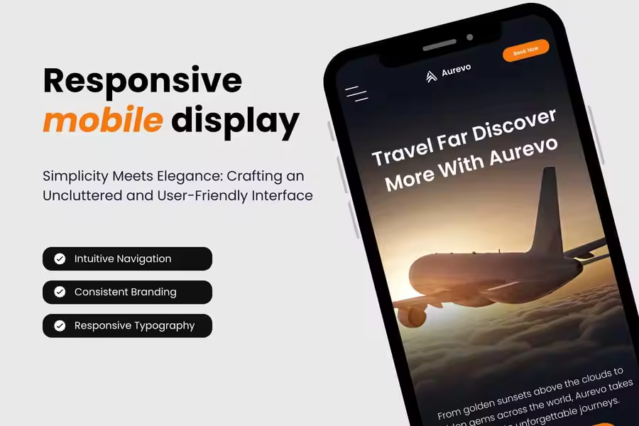 * **具有影响力的英雄部分** – 醒目的标题、飞机图像和用于预订或探索旅行的双重号召性用语按钮。