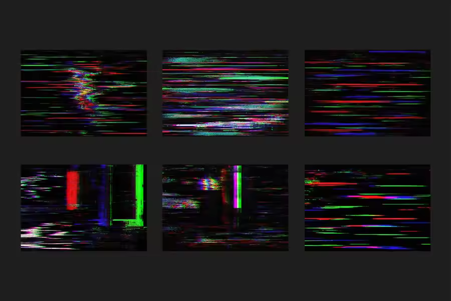 使用 Glitch Core,为您的视觉效果注入原始的数字混乱。Glitch Core 是一组大胆的扭曲纹理,其灵感源自模拟错误、VHS 静电和 RGB 干扰。这些充满故障效果的背景融合了霓虹条纹、像素化噪点和损坏的视觉效果,为您的设计增添赛博朋克和未来主义的美感。非常适合用于音乐封面、海报、游戏视觉效果以及具有前卫氛围的数字艺术。