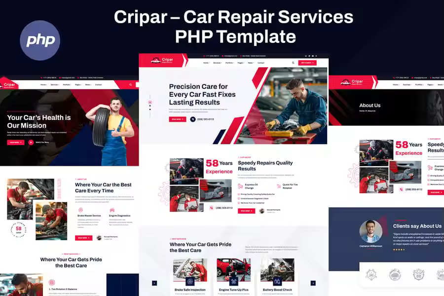 使用 Cripar 提升您的汽车维修和保养业务的在线形象。这款 PHP 模板助您打造专业且引人入胜的网站,将访客转化为忠实客户。