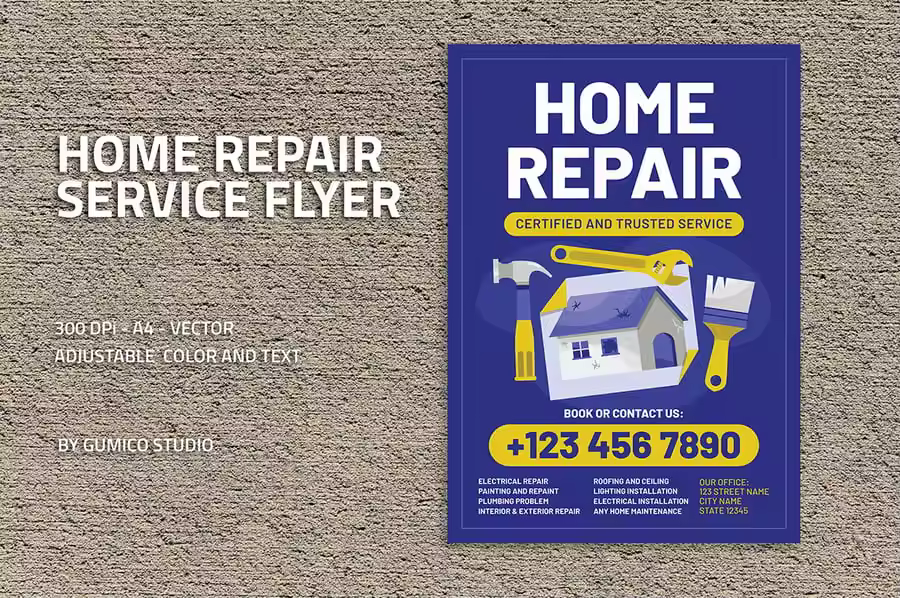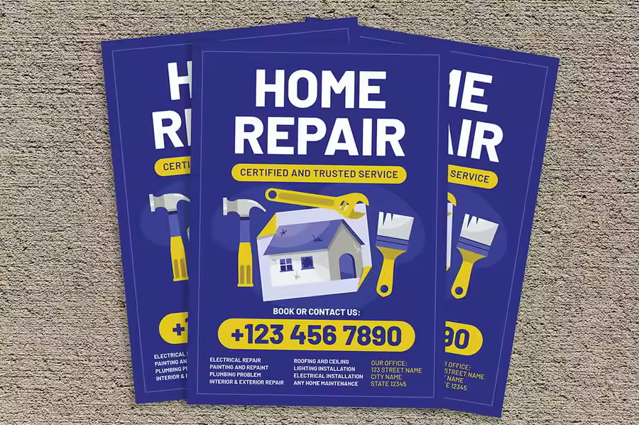 **“家庭维修服务传单”** 是推广您的维修服务或任何您想要的服务的正确选择!
