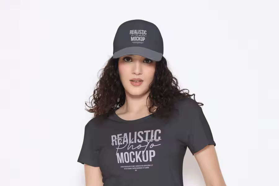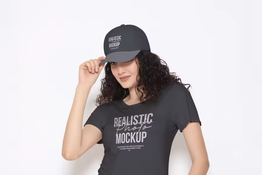 通过这款**T恤和帽子样机**,以无与伦比的优雅展现您的设计。精准的细节和高分辨率,让您作品的每一个像素都光彩夺目,散发出专业感和惊艳的视觉效果。非常适合希望以高端风格展示作品集的人士。