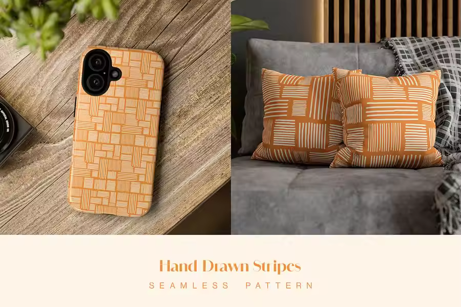 无缝手绘条纹图案,自然流畅,充满艺术感。非常适合纺织品、壁纸、包装、文具以及需要趣味手工触感的数字项目。
