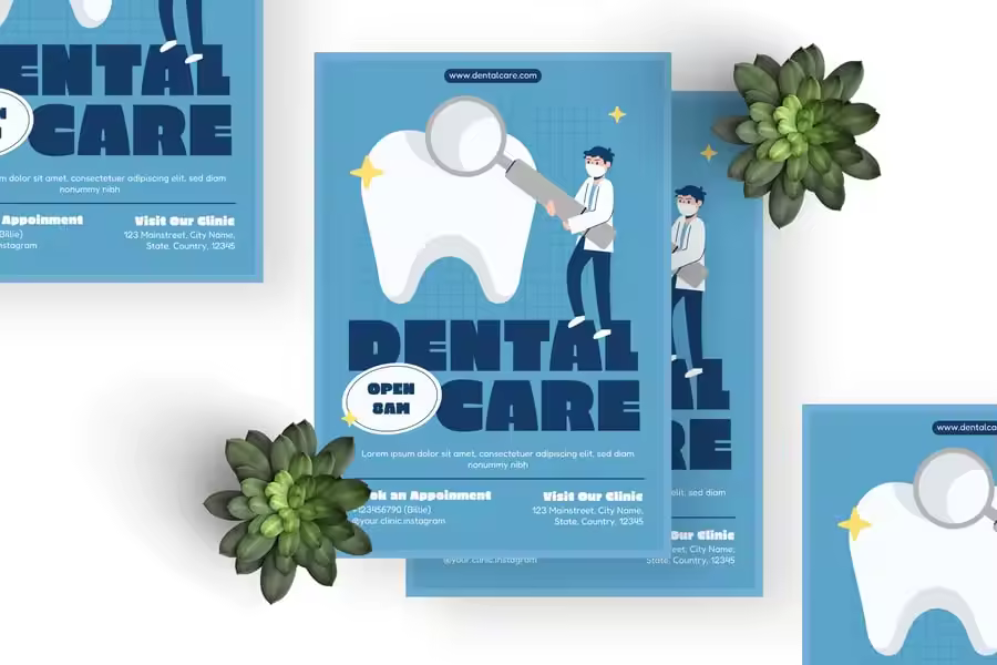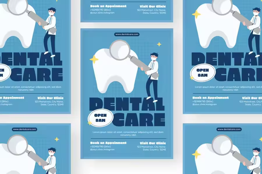 我们的“牙科护理”传单套装带来惊艳的视觉冲击。我们精心设计,可根据您的品牌或业务进行个性化定制。无论您展示哪个行业、服务或产品,我们都能为您提供理想的传单套装。