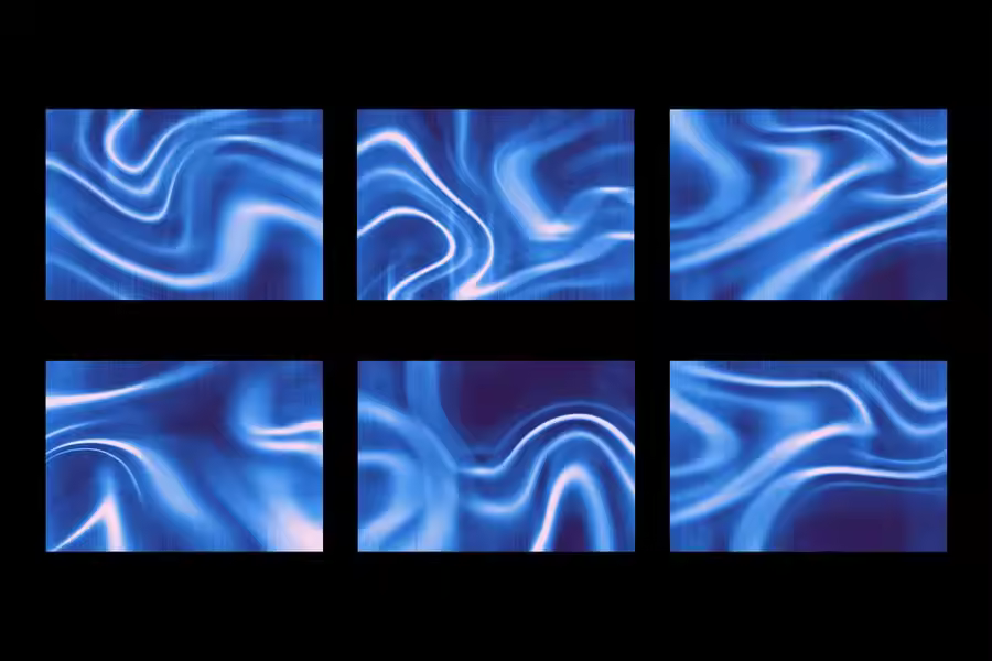 蓝色流动是一组流畅抽象的蓝色纹理,带有动态的光条纹和流畅的流动感。鲜艳的蓝色与微妙的高光相结合,营造出充满活力却又令人平静的效果。这些流动的纹理非常适合数字设计、海报、品牌、包装和创意艺术品,能为任何项目增添未来感和艺术感。