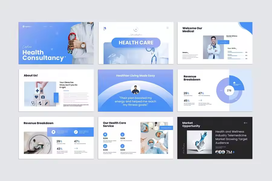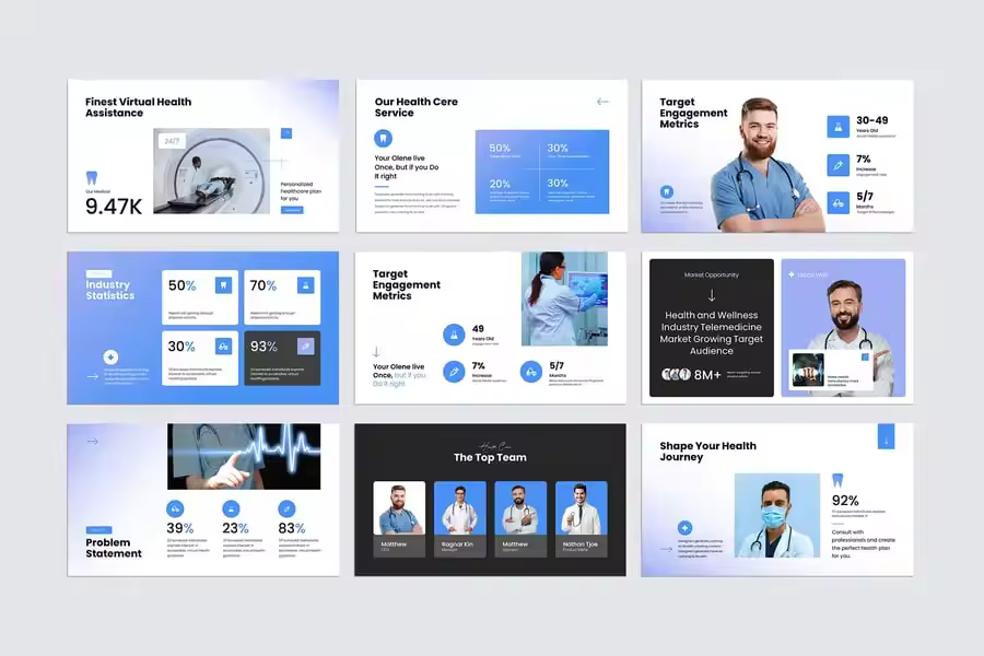 我们提供医疗健康领域演示的最佳模板,简约、优雅且专业,让您的演示更吸引