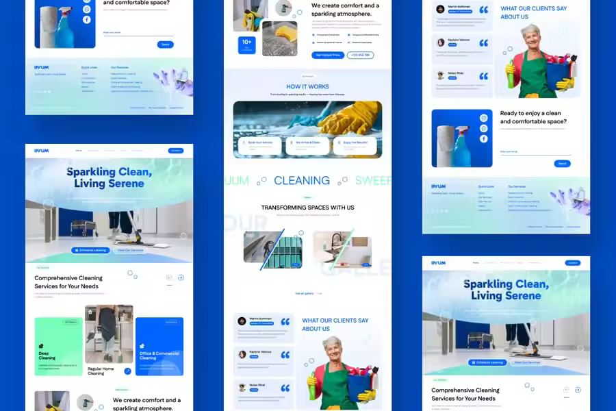 专为清洁服务打造的专业简洁 Figma 布局,助您建立信任,提升预订量。井然有序的图层、现代风格,以及便捷的自定义功能,尽在一个智能套件中。