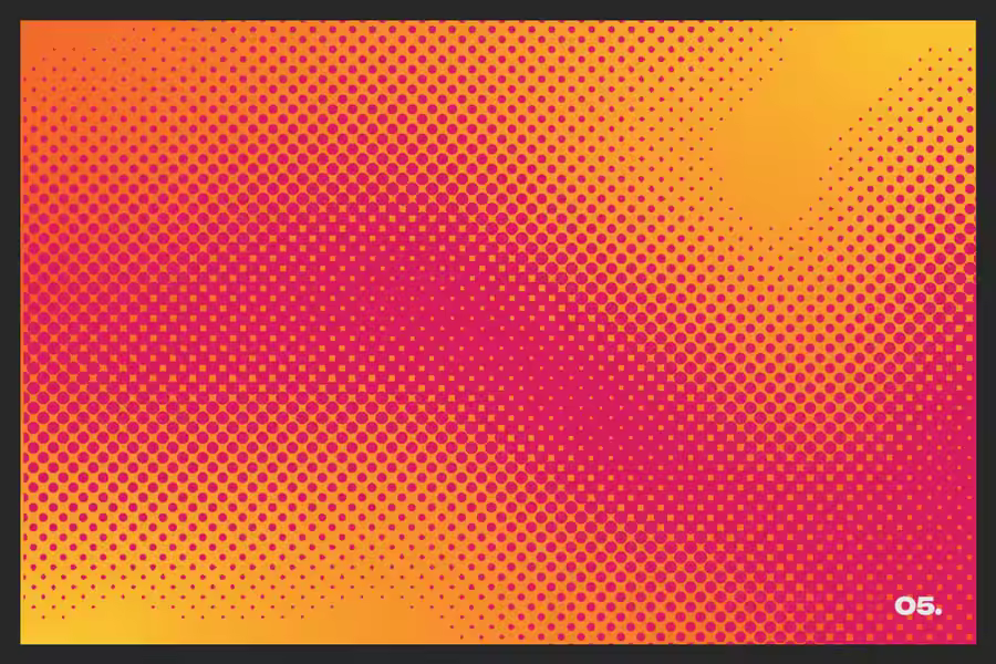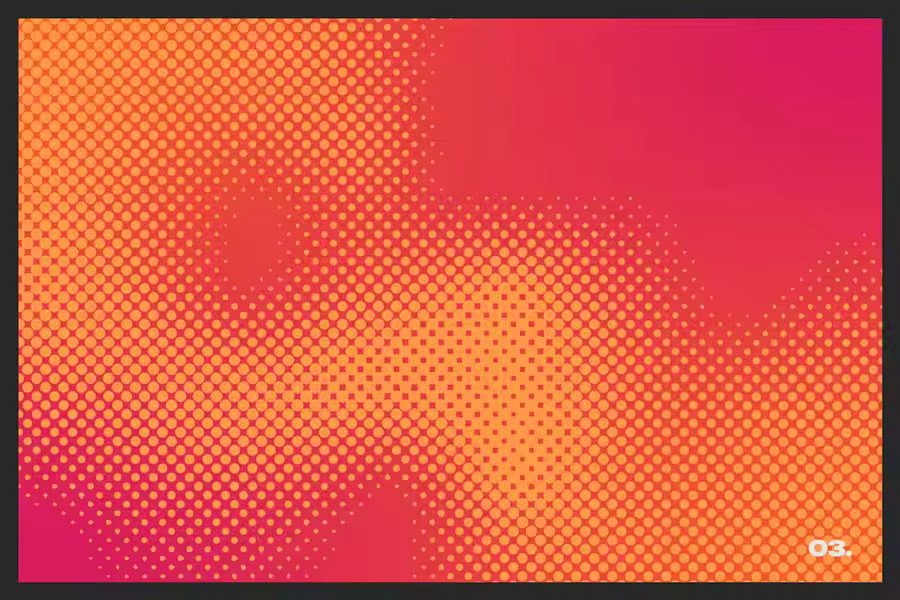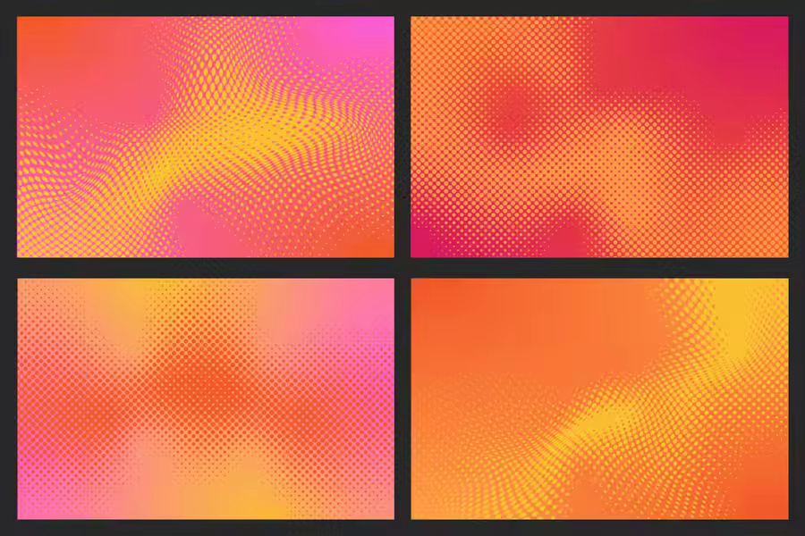 这组充满活力的渐变半色调背景将温暖的橙色、粉色和黄色与流畅的圆点图案相结合,营造出大胆现代的外观。这些动态纹理非常适合海报、传单、网页设计和社交媒体图形,将复古波普艺术的活力与现代元素巧妙融合。