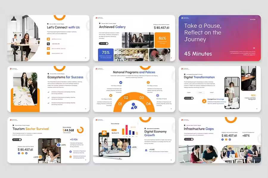无论您是在准备投资者推介、初创企业展示、公司演示还是战略商务会议,此模板都能提供您传达专业精神和信心所需的一切。