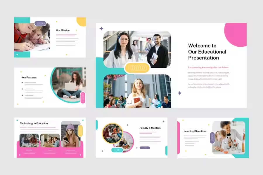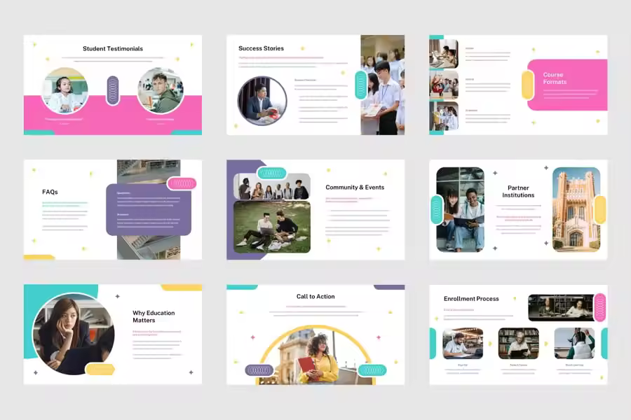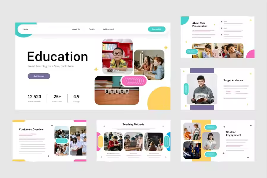 教育演示幻灯片将鲜艳的色彩与简洁现代的设计相结合,使每节课或学校会议都赏心悦目、易于理解。醒目的点缀和生动的背景能够瞬间吸引观众的注意力,突出关键信息,并让观众从始至终保持参与。每张幻灯片的布局都经过精心设计,在视觉冲击力和易读性之间取得平衡,使学生、教师和家长都能清晰地理解复杂的信息。无论您是介绍新课程、分享学校成就,还是展示教学方法,这些幻灯片都能确保您的故事既令人难忘又专业。灵活的设计选项让您可以轻松自定义颜色、照片、图标和内容,从而根据不同年级、科目或学术活动调整模板。内置的使命、愿景、教师简历、推荐信和行动号召等板块,让您能够轻松组织演示文稿并鼓励参与。充满活力的风格营造出积极向上、激励人心的氛围,有助于促进学习和记忆。这些幻灯片非常适合课堂教学、网络研讨会、开放日之夜或在线课程,能够提升教育故事的讲述效果,让每条信息都熠熠生辉。
