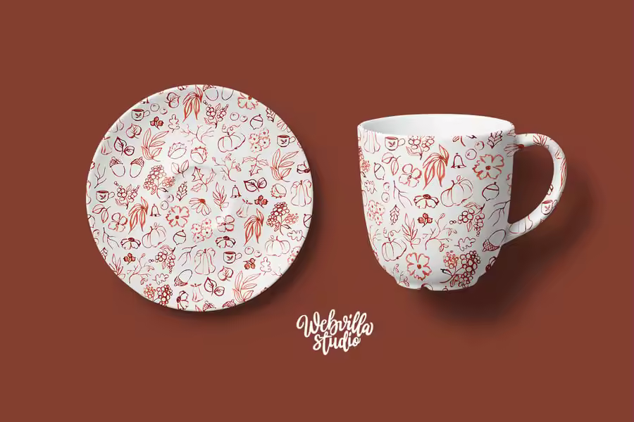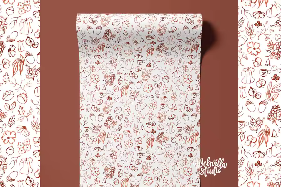 秋季涂鸦水彩图案 图案/花样 18 Q~ 用于包装和文具的高品质无缝花卉图案。 ➤ 包含的内容: • PSD+JPG + PNG (300 DPI) • 无缝重复图块 (7559x7559px) • RGB 颜色模式 • 非常适合织物、包装纸、品牌等
