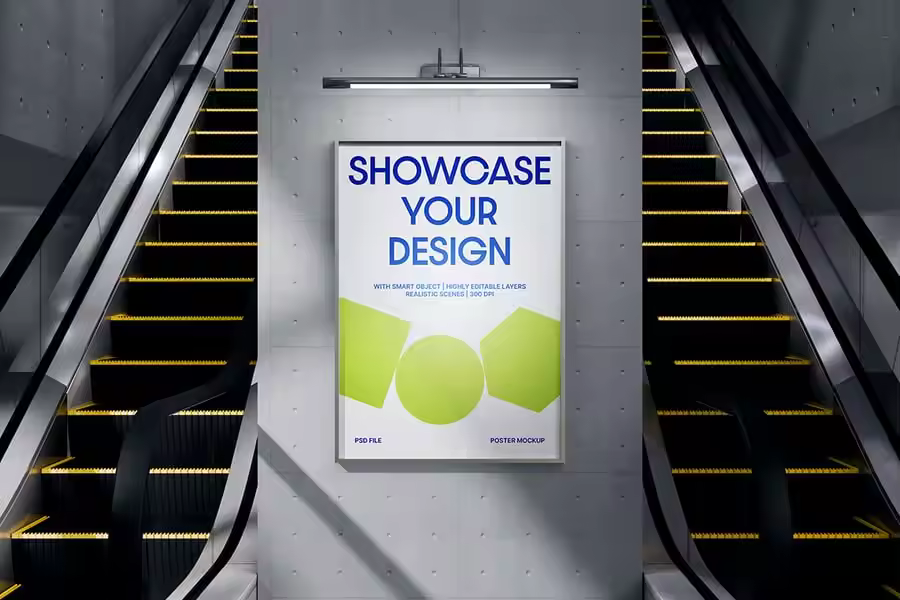 使用这款逼真的地铁海报模型,在逼真的地铁场景中展示您的宣传活动。高分辨率 PSD 文件、智能对象和井然有序的图层,让您能够快速精准地切换图片。可调节的灯光、反射和阴影强度,以及可更改的墙面纹理和色偏,助您轻松匹配任何品牌。它支持常见的海报比例,非常适合户外演示、项目推介、社交宣传、作品集和客户样稿。
