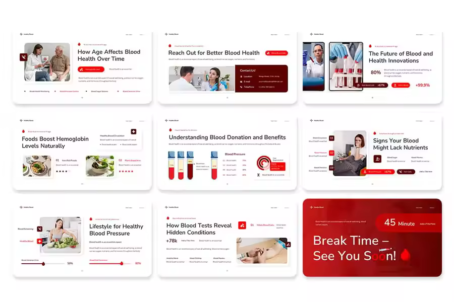 此模板针对企业和教育环境进行了完美优化,可帮助您以引人入胜的视觉方式传达医学见解、研究成果和实验室数据。通过体现精准、创新和专业的设计,提升您的下一次演示体验,并与受众建立信任。