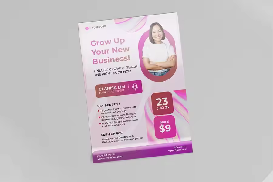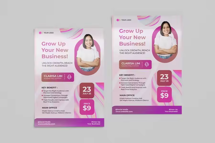 使用专业设计的网络研讨会商务会议传单模板,最大限度地提升曝光度,推广您的创意业务。立即定制,俘获您的受众,征服他们!