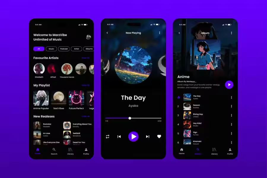 MarzVibe 拥有时尚现代的设计,提供尖端的音乐流媒体体验。其直观的界面让用户轻松探索和欣赏自己喜爱的曲目。对于致力于打造充满活力、引人入胜、能够与用户品味和氛围产生共鸣的音乐应用的开发者来说,MarzVibe 是理想之选。