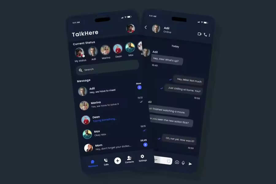Talk Here 是一款简洁高效的聊天应用设计模板。简洁的界面和直观的导航,确保了流畅的聊天体验。非常适合那些想要打造一款注重用户体验和功能的实用聊天应用的开发者。