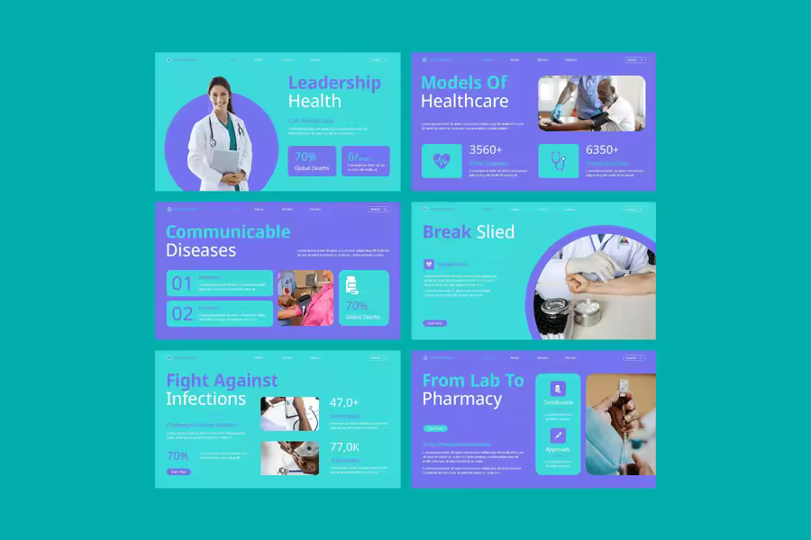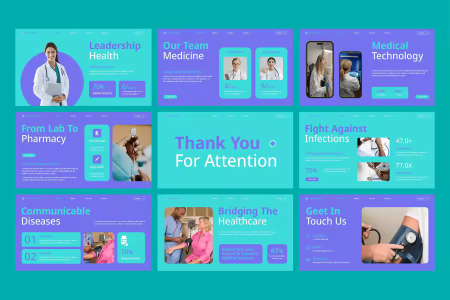 关键部分包括现代布局、医疗主题图标、医疗信息图表和科学视觉效果,简化了复杂信息并确保传递的准确性。该模板完全可定制且适应性强,非常适合医疗演示、健康意识宣传活动、学术讲座或制药提案,使其成为医疗保健和医药行业专业人士的多功能工具。