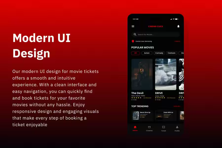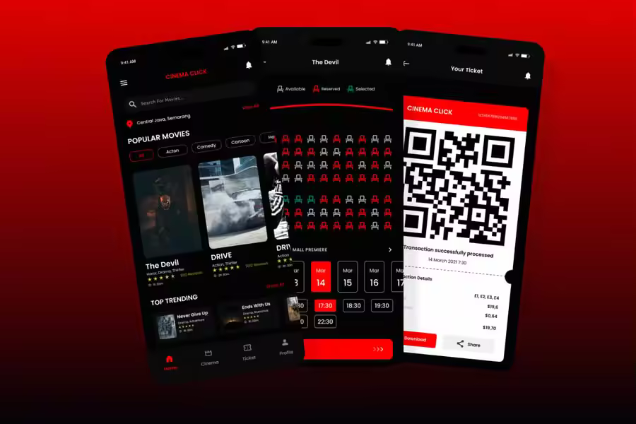 Cinema Click 将易用性与醒目的视觉设计相结合,使其成为电影票预订的首选。流畅的导航和美观的设计元素确保用户享受流畅愉悦的体验。无论您是影院运营商还是电影应用程序开发者,Cinema Click 都能提供专业且引人入胜的解决方案。